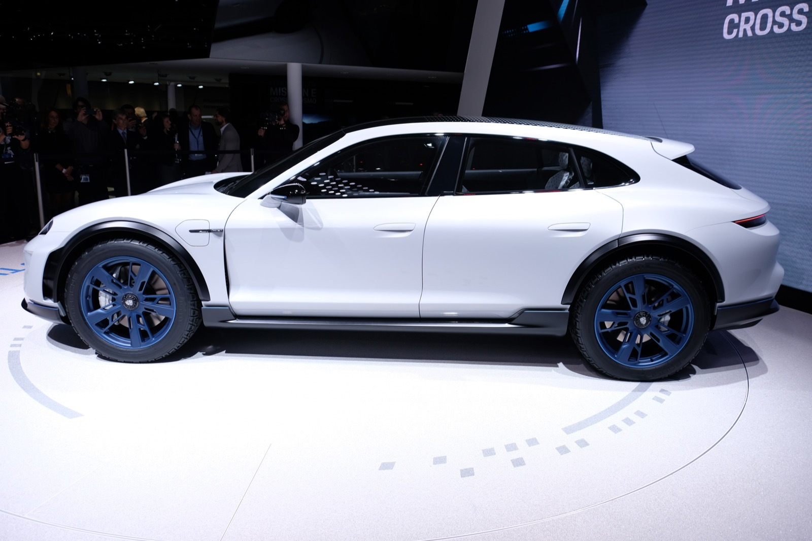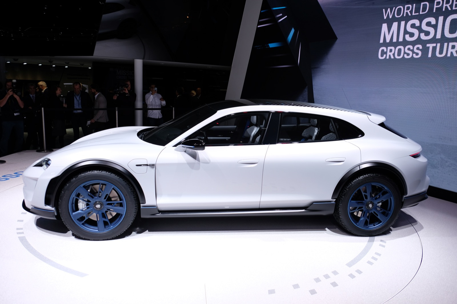 The Cross Turismo has around 600 HP of power from its motors, and can get up to over 120 miles per hour in under 12 seconds. On the inside, it has a new concept dash with a long center console touch panel and small touch screens integrated into the ents and near the windows for controlling vents and other comfort functions.