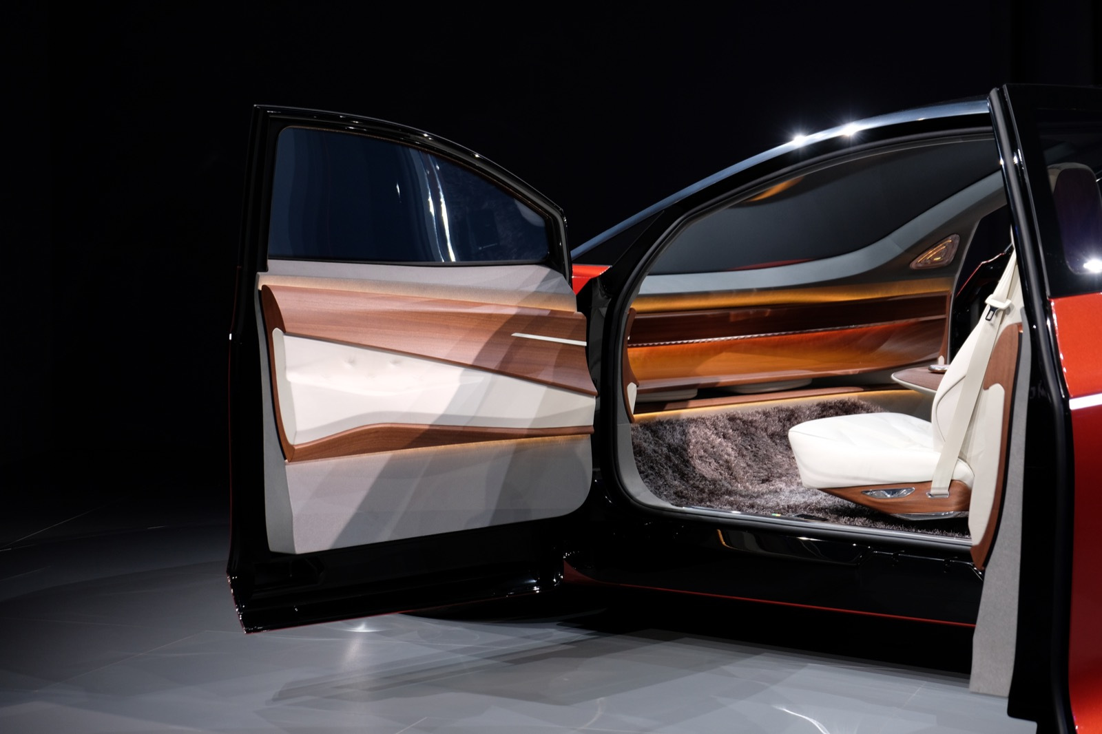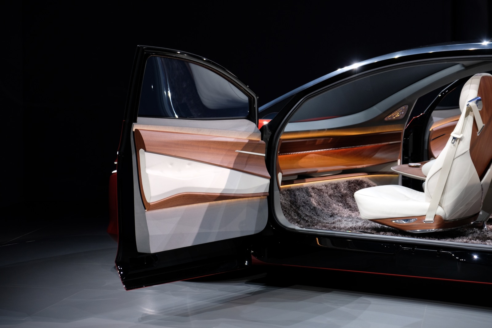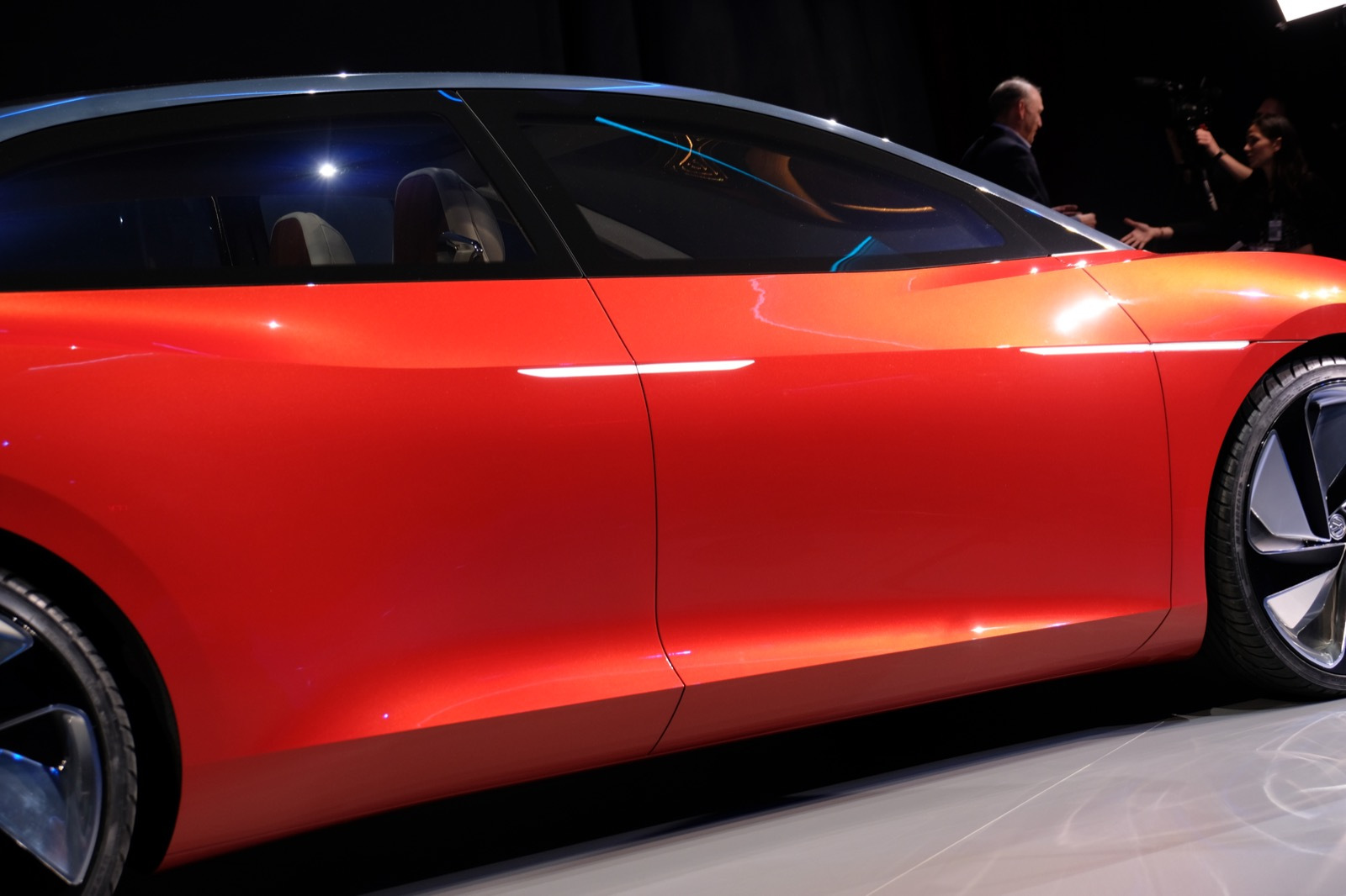It’s a bit strange seeing a car with no visible dash displays and no steering wheel, brake or gas pedal, but most interesting is that the Vizzion still manages to look like a sporty car, one that you kind of want to, well drive. It has 302 HP equivalent from front and rear-axle electric motors, and a low center of gravity that can help it hug the road.